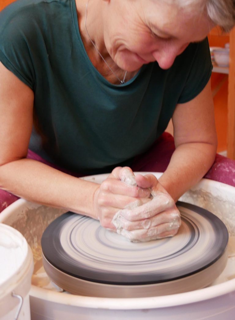 Man kann es kneten, rollen, zusammendrücken, es lässt sich mit den Händen frei formen oder auf der Töpferscheibe zu Gefäßen drehen. Auf diese Weise entstehen ganz eigene Ton-Stücke.